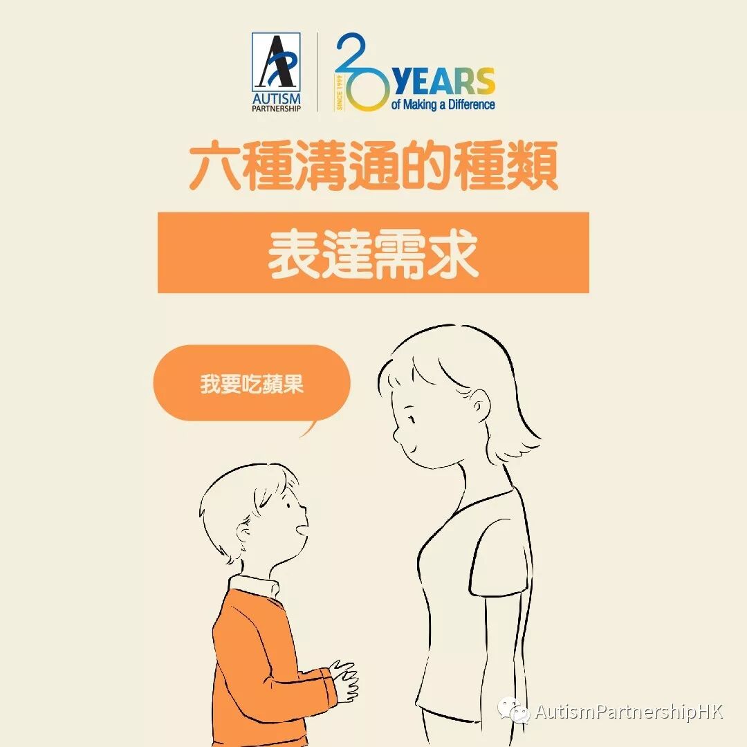 自闭症孩子能使用语言沟通,有效、恰当地表达自己的想法是不少家长的愿望。 其实沟通也分为不同的种类,当中孩子最容易掌握的是「表达需求」。